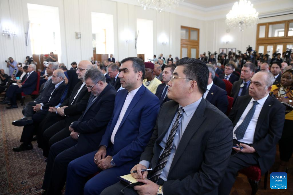 Foreign diplomats attend a meeting in Tehran, Iran, Oct. 5, 2025. Iranian Foreign Minister Seyed Abbas Araghchi said that the recent agreement on resuming cooperation with the United Nations nuclear watchdog can no longer serve as the basis for bilateral collaboration. (Xinhua/Shadati)