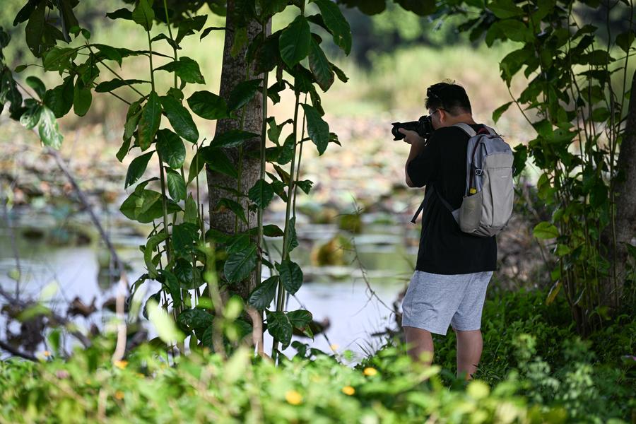 CHANGJIANG, Oct. 6 (Xinhua) -- Following ecological restoration and facility construction, Haiwei National Wetland Park has recently reopened to the public. The park serves as a crucial habitat for migratory birds. In recent years, with strengthened protection and monitoring efforts, the park has recorded 213 bird species.