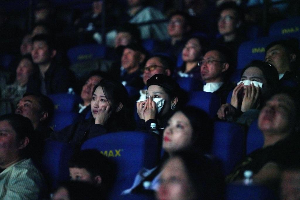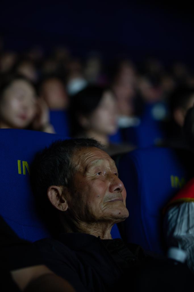 9月17日,在哈尔滨市哈东万达影城,受害者家属在观看电影《731》。新华社发(张大巍摄)