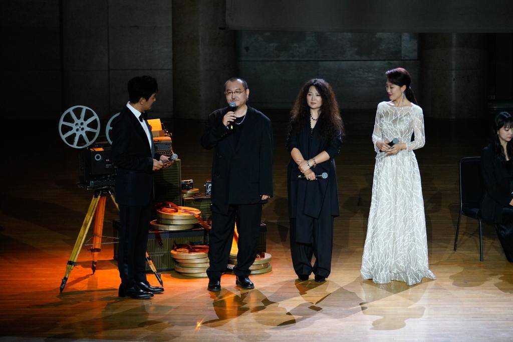 9月22日,电影《封神第一部:朝歌风云》导演乌尔善(左二)、音乐总监蒙柯卓兰(右二)在音乐会上互动。新华社记者 谢晗 摄