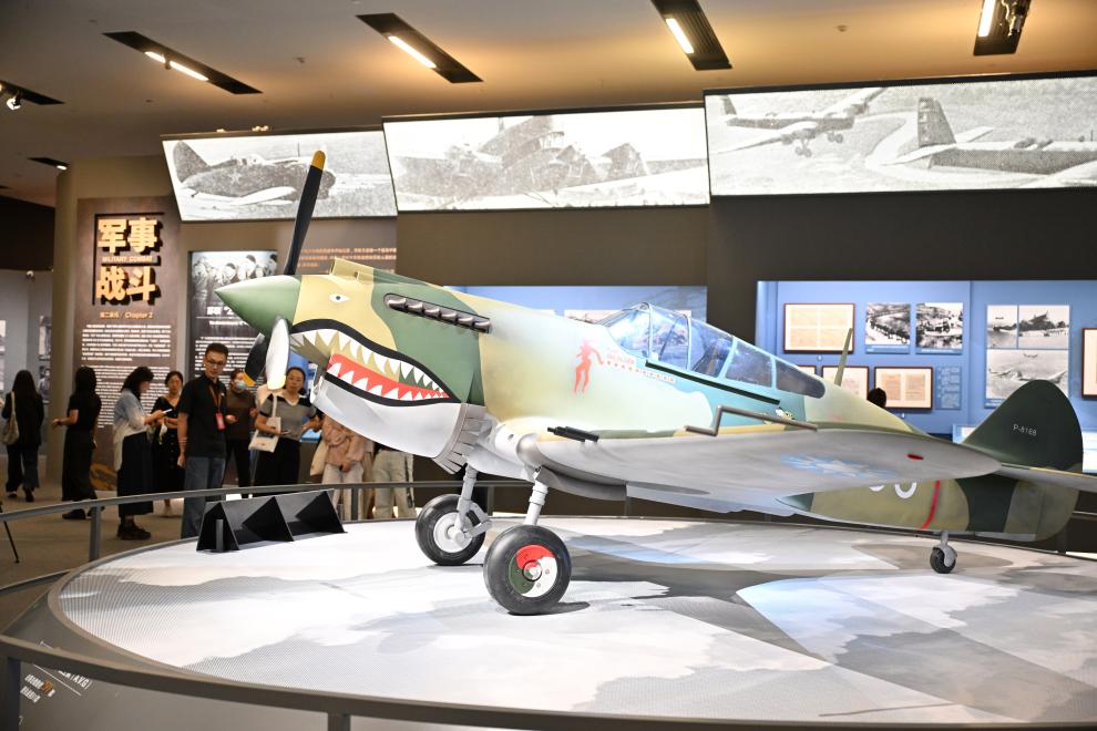 这是在中国国家博物馆展出的“飞虎队”P-40战斗机模型(9月7日摄)。