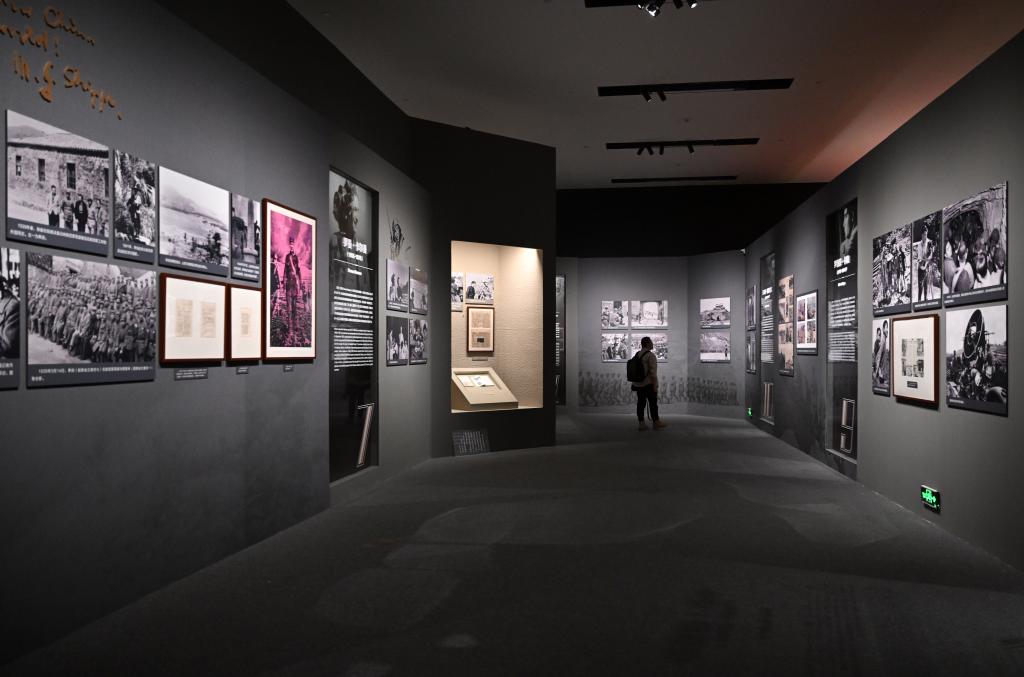 9月7日,在中国国家博物馆,一名媒体人员在参观白求恩的照片。