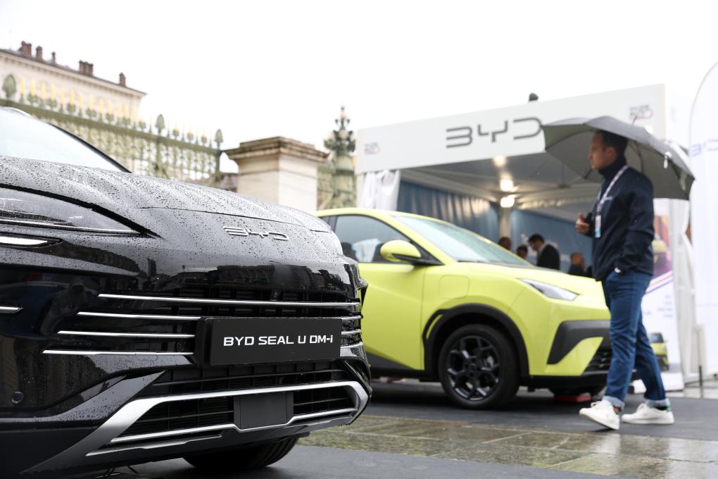 9月26日,在意大利都灵,人们在2025年都灵车展上参观比亚迪展区。
